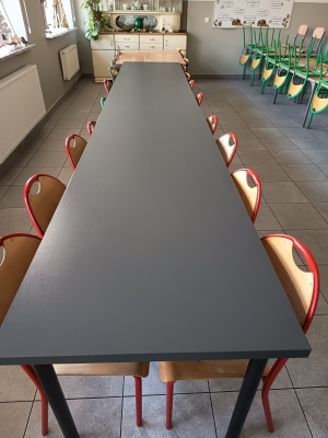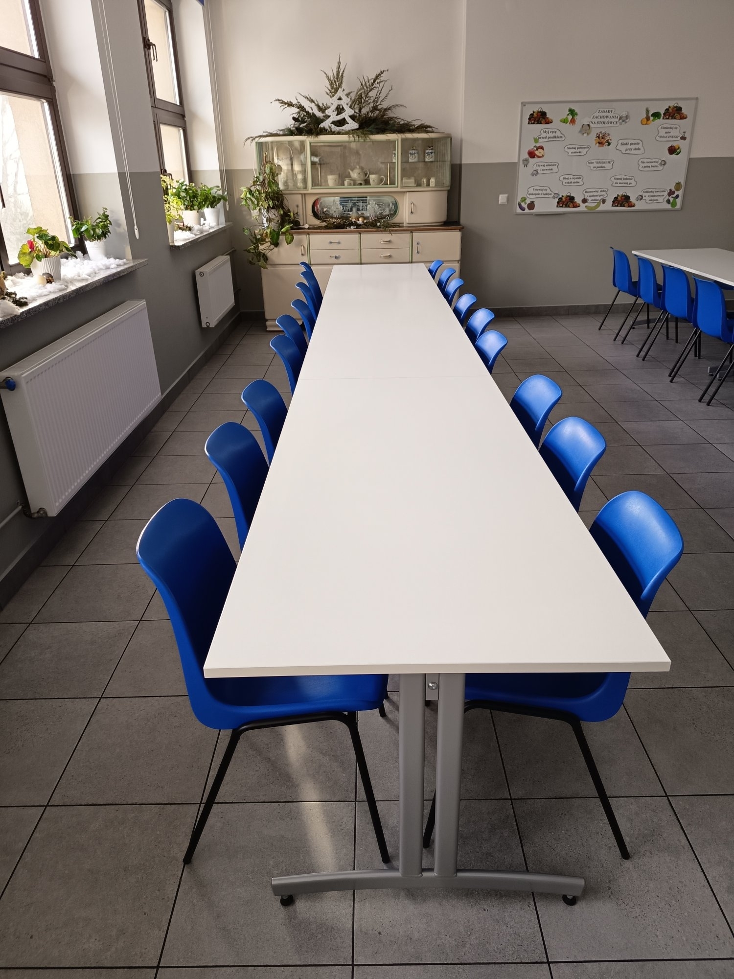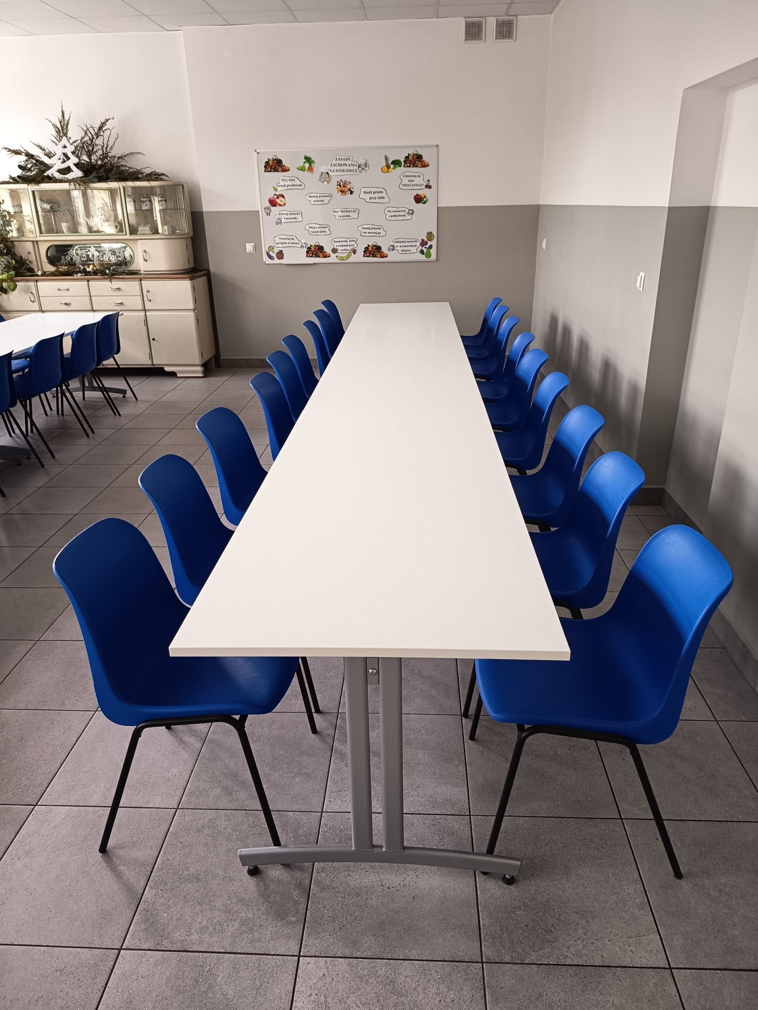 Z wielką radością informuję, że jeszcze w ostatnich dniach ubiegłego roku zakupiliśmy nowe stoły i krzesła dla naszej stołówki szkolnej. Mamy piękny komplet i na pewno uczniom bardzo się spodobają. Koszt zakupu tych mebli wyniósł 11 394 złotych. Na zdjęciach dotychczasowe oraz nowe wyposażenie stołówki.