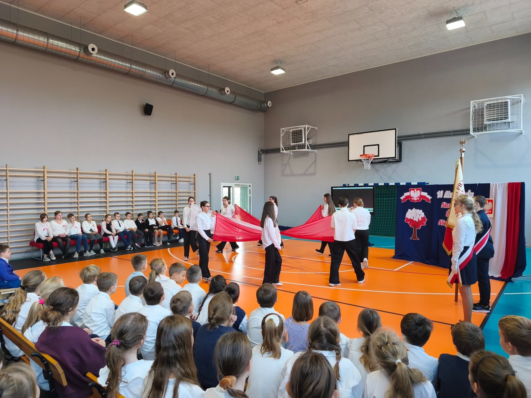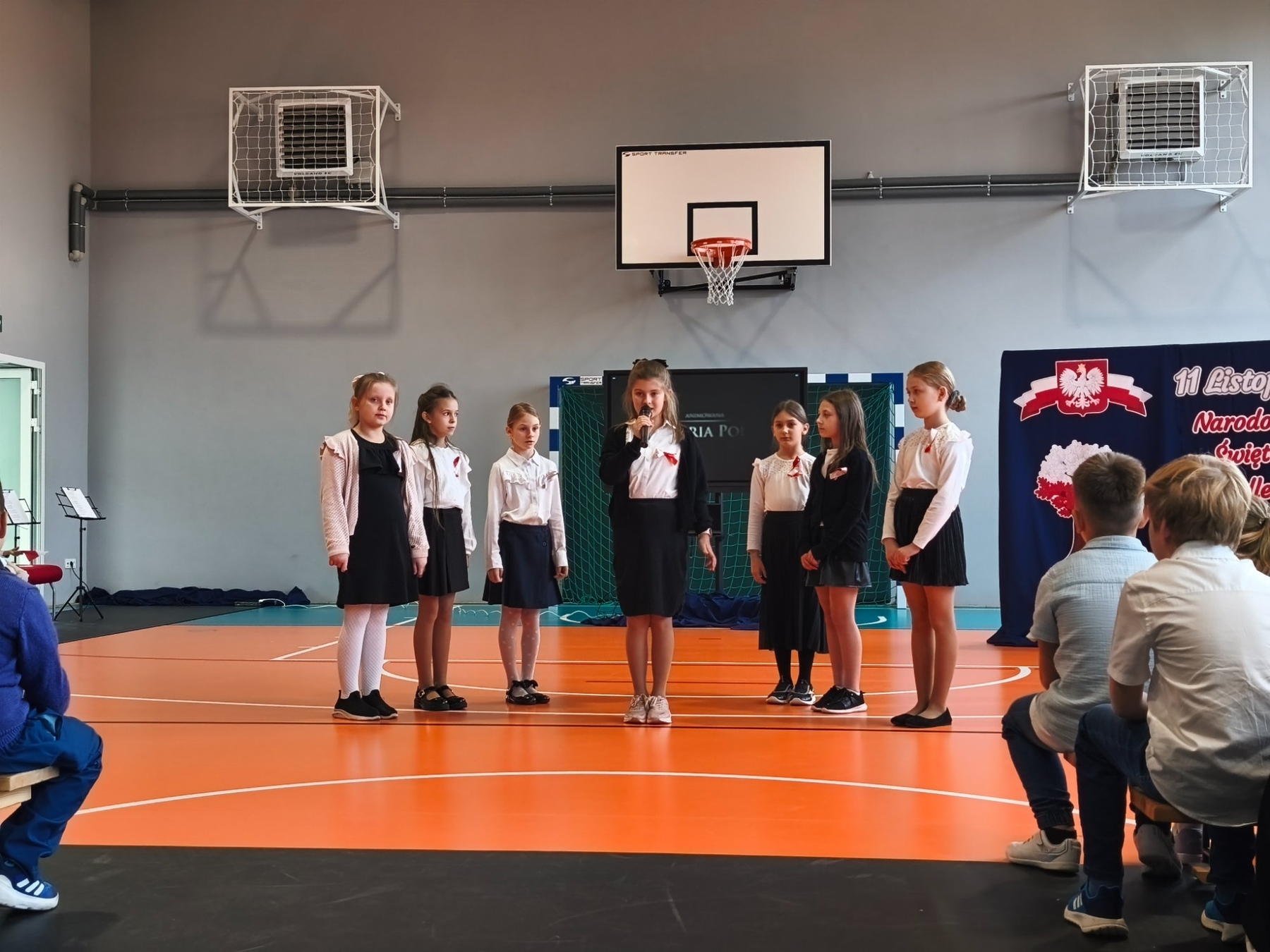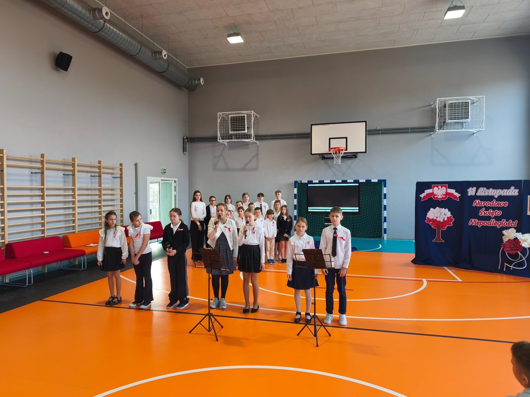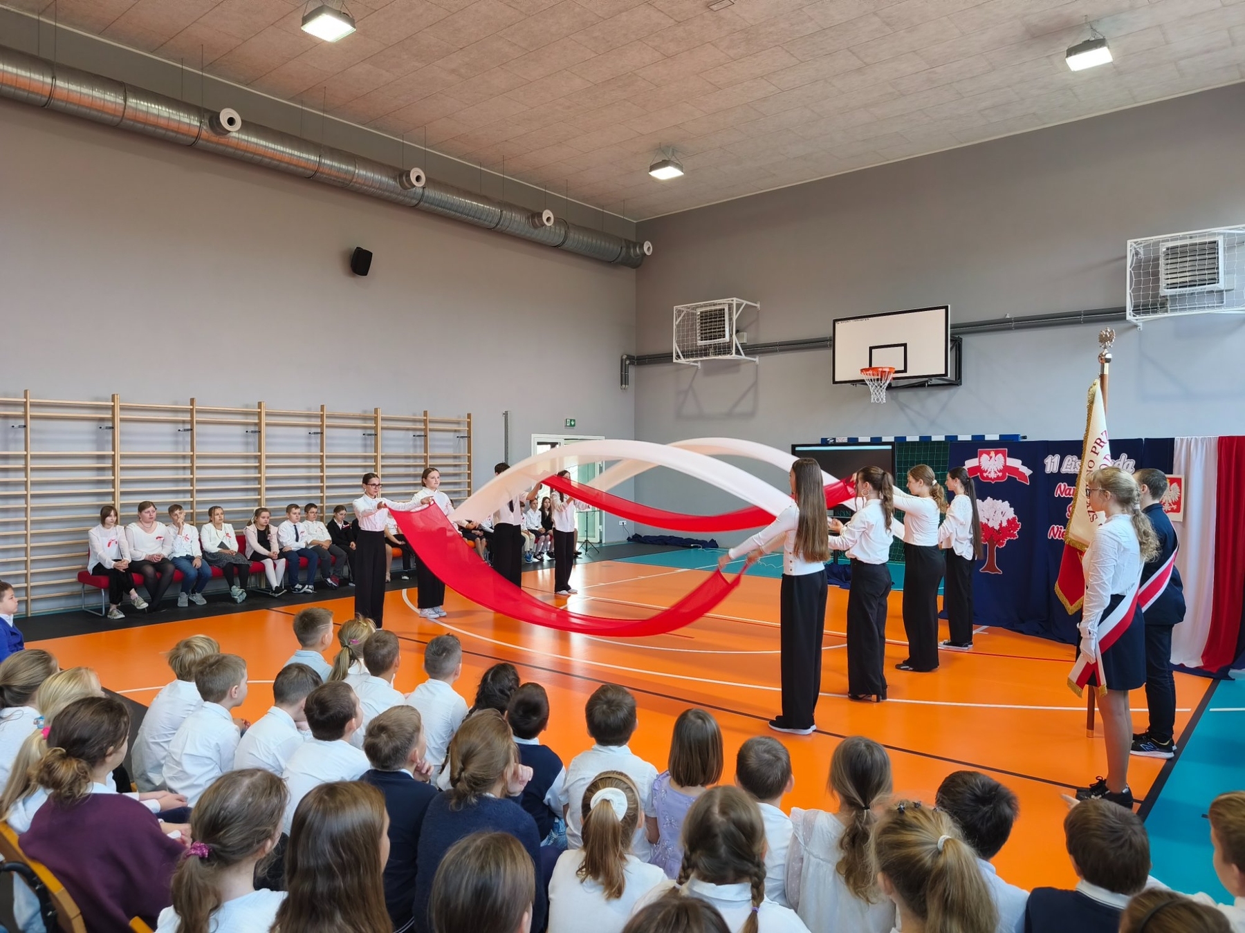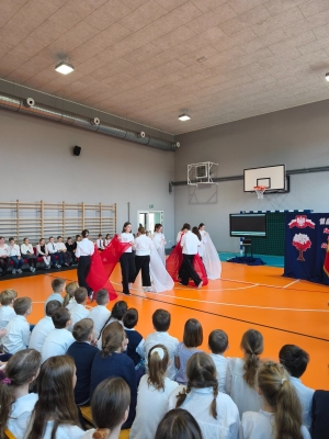 12 listopada 2025 roku uczestniczyliśmy w uroczystej akademii poświęconej kolejnej rocznicy Odzyskania przez Polskę Niepodległości. Podczas montażu słowno-muzycznego usłyszeliśmy wiele pięknych słów o naszej Ojczyźnie, a uczennice klasy VII i VIII przedstawiły piękny, patriotyczny i wzruszający taniec. Wszyscy, odświętnie ubrani świętowaliśmy odzyskanie wolności. Z okazji tego święta, przedstawiciele klas I – III uczestniczyli też