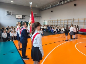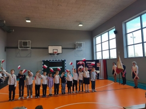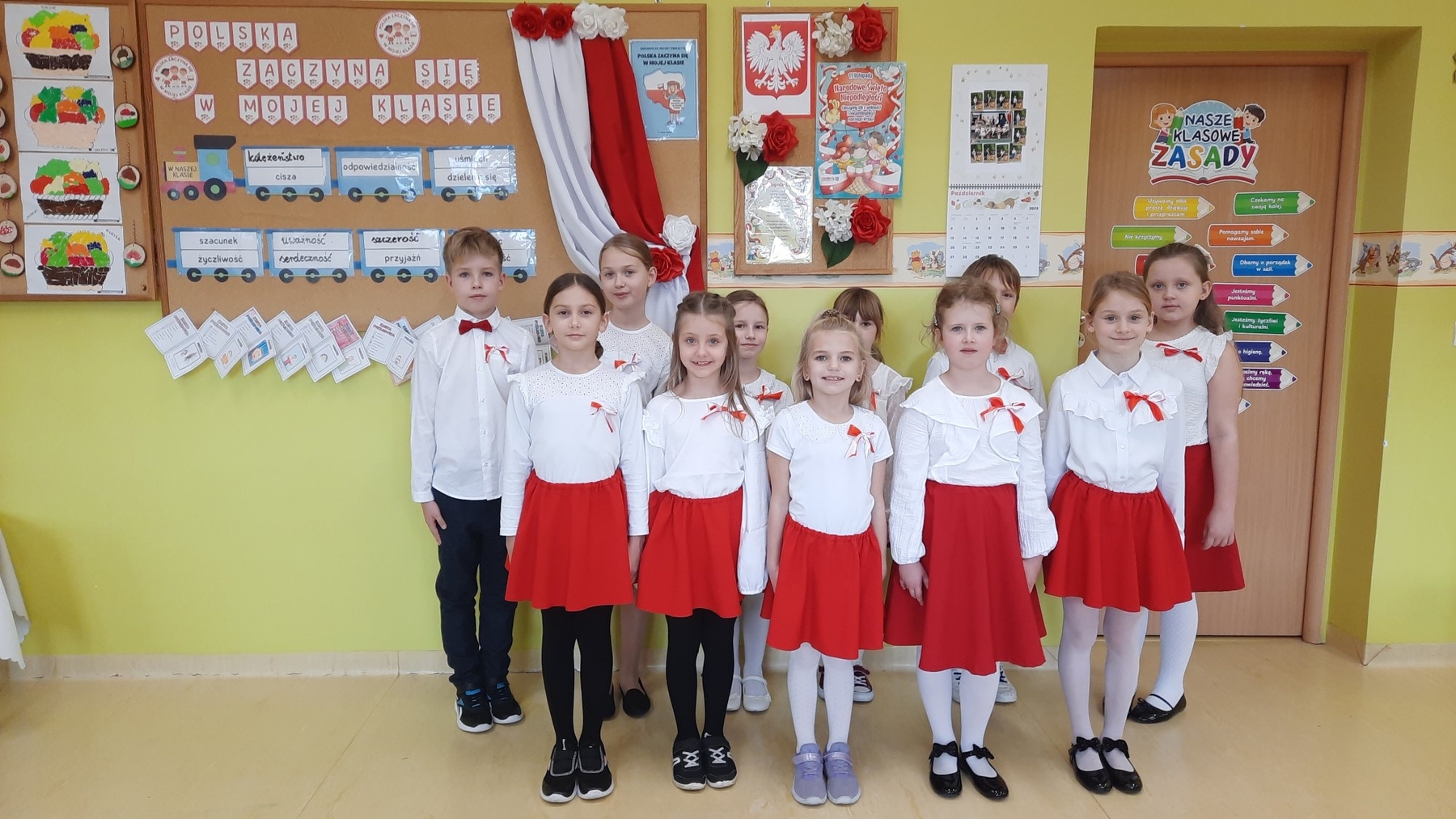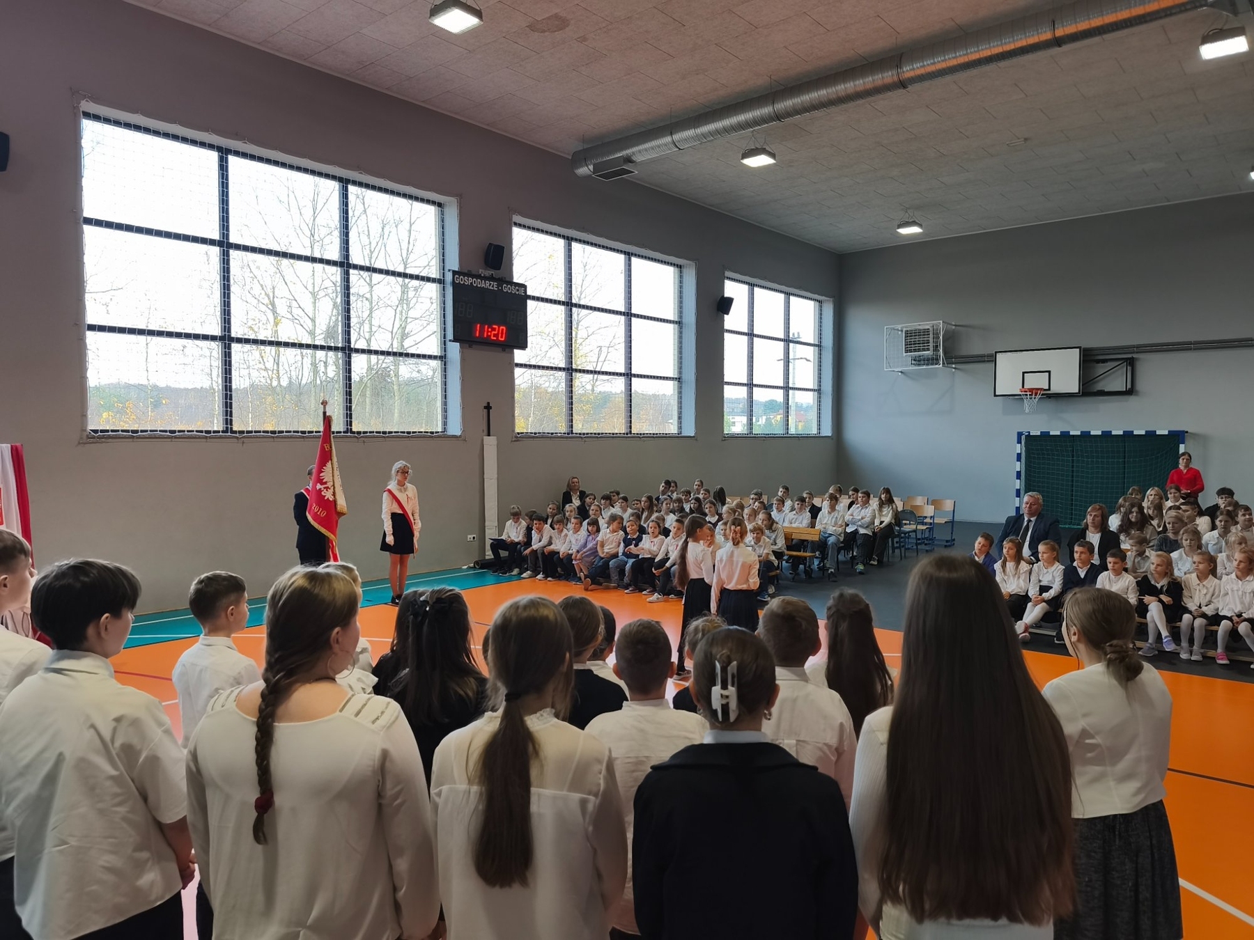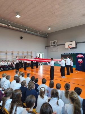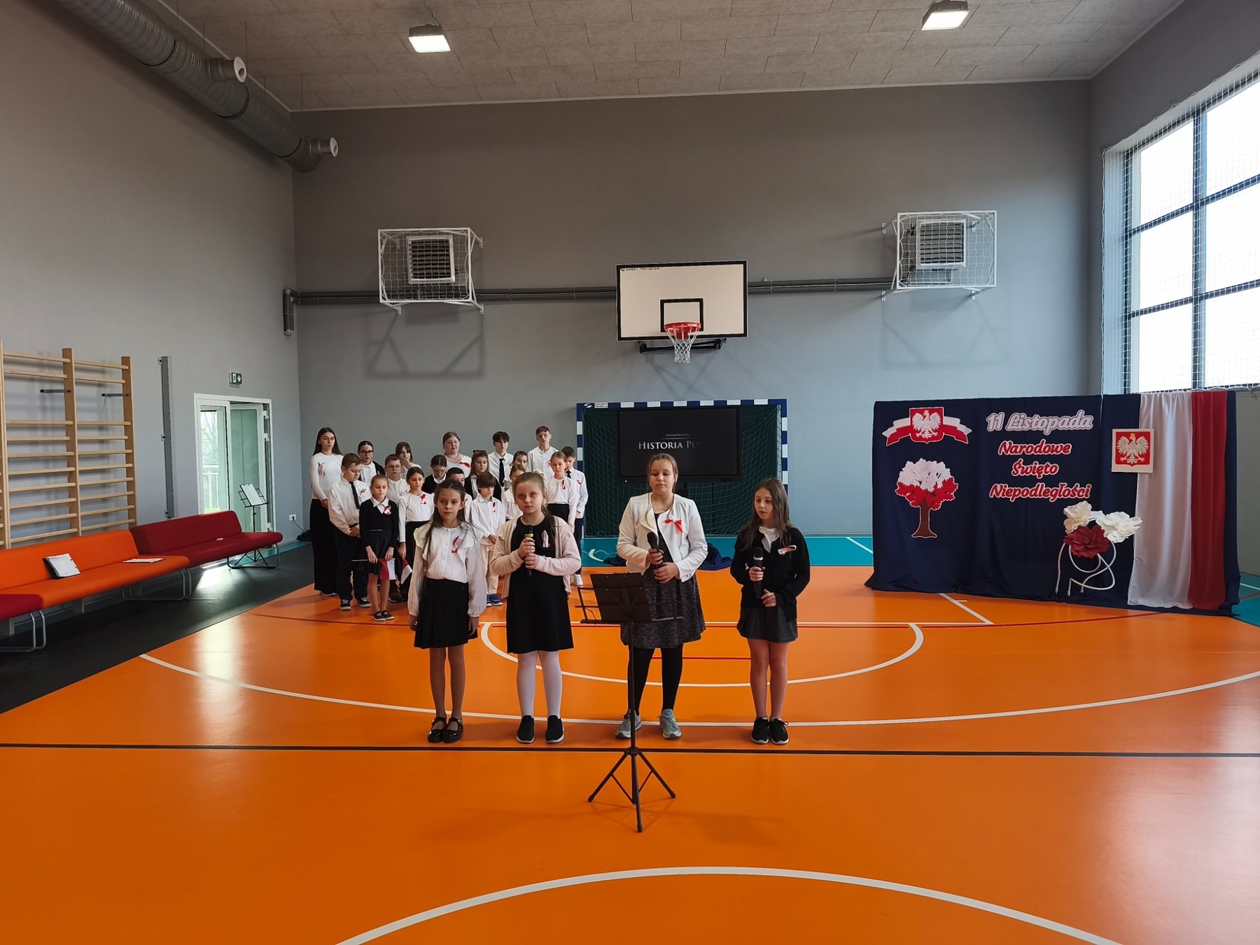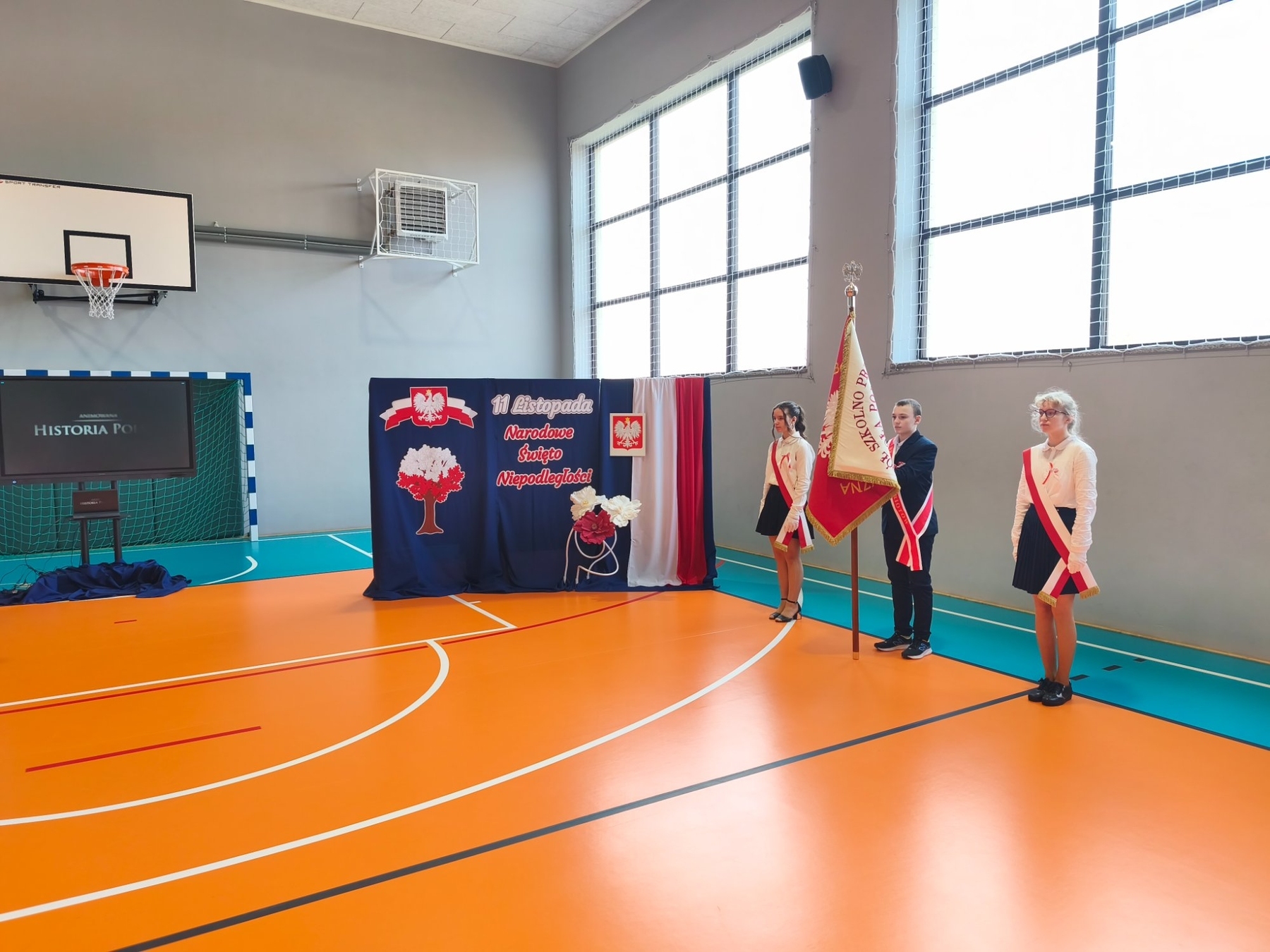 12 listopada 2025 roku uczestniczyliśmy w uroczystej akademii poświęconej kolejnej rocznicy Odzyskania przez Polskę Niepodległości. Podczas montażu słowno-muzycznego usłyszeliśmy wiele pięknych słów o naszej Ojczyźnie, a uczennice klasy VII i VIII przedstawiły piękny, patriotyczny i wzruszający taniec. Wszyscy, odświętnie ubrani świętowaliśmy odzyskanie wolności. Z okazji tego święta, przedstawiciele klas I – III uczestniczyli też