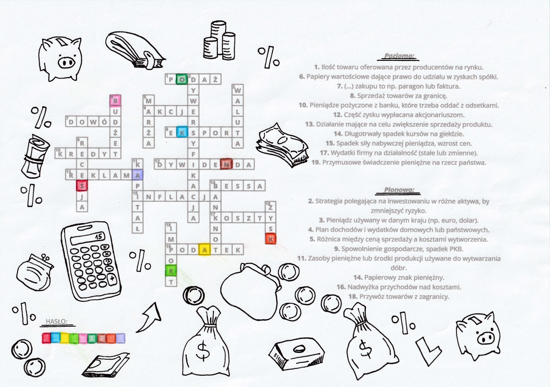 oraz zestawu pojęć ekonomicznych wraz z definicjami, a następnie zaprojektowanie krzyżówki w formacie A4.
