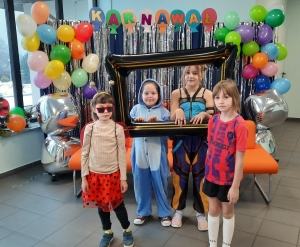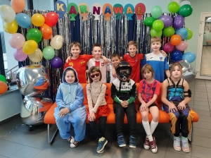 Każde dziecko zaprezentowało się w ulubionym stroju, a prowadzące zapewniły dzieciom świetną zabawę, konkursy i wiele innych atrakcji. Była też okazja, żeby zrobić sobie zdjęcie z kolegami na karnawałowej ściance oraz czas na poczęstunek, o który zadbali rodzice. Serdecznie dziękujemy!!!