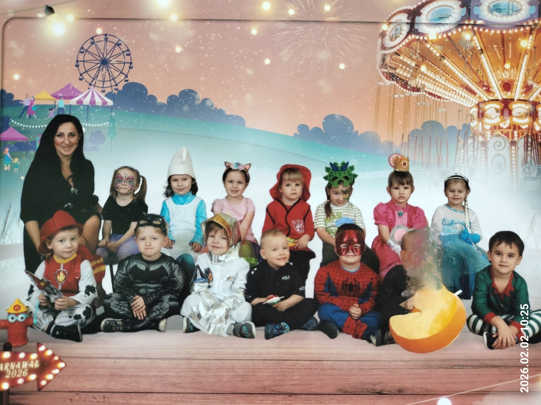 12.01.2026r. Kolorowe stroje, bajeczny wystrój i skoczna muzyka - tak właśnie wyglądał Bal Karnawałowy w naszym przedszkolu. Przedszkolaki z dumą prezentowały bajeczne stroje, z wielką ochotą uczestniczyły w tańcach, zabawach i konkursach.