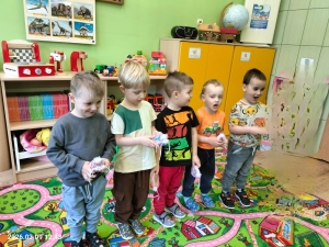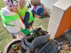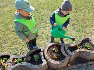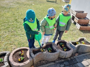 Wspólnie rozmawialiśmy o tym, jak ważny jest szacunek, życzliwość i uprzejmość wobec innych. Dzieci brały udział w zabawach integracyjnych, konkursach oraz zajęciach plastycznych, podczas których tworzyły piękne prace związane z tym świętem. A średniaki dodatkowo posadziły wiosenne kwiaty w swoim ogródku.