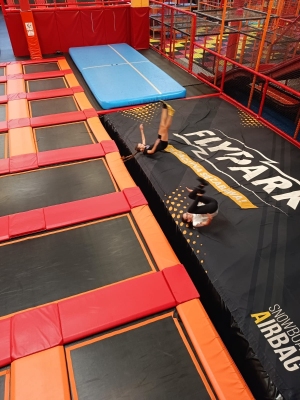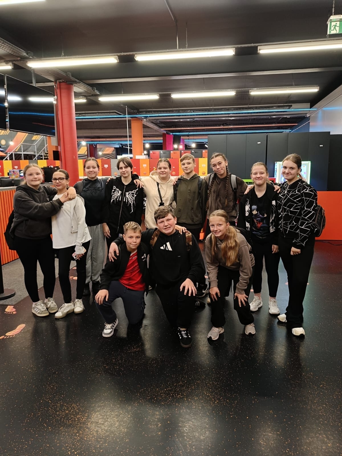 19 września 2025r. uczniowie klasy VII udali się na wycieczkę do FlyParku w Radlinie. Celem wycieczki było promowanie aktywności fizycznej, poznanie nowych atrakcji w regionie, dobra zabawa i integracja grupy. Uczniowie bawili się dobrze, mogli skorzystać z basenów z gąbkami i kulkami, zjeżdżalni, strefy wspinaczkowej, gigantycznych klocków Lego i interaktywnego labiryntu TagArena.
