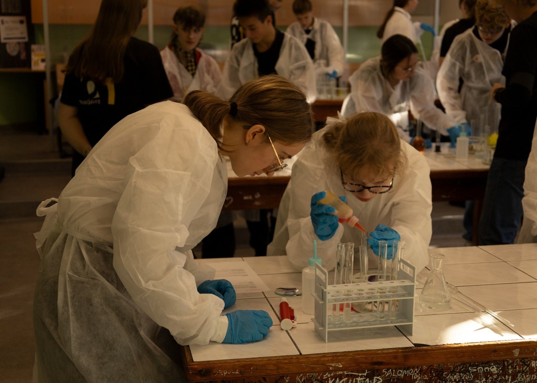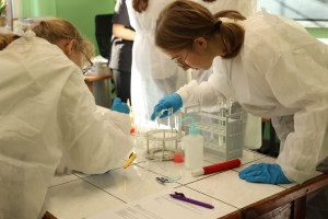 i integracji – uczniowie wzięli udział w warsztatach z języka francuskiego i matematyki. Finał odbył się w Zielonej Pracowni, gdzie sześć najlepszych drużyn zmierzyło się z zadaniami laboratoryjnymi wymagającymi precyzji, uważności i naukowego zacięcia .