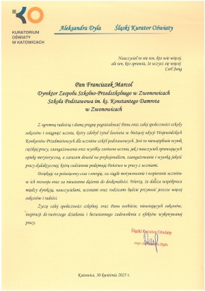Z ogromną satysfakcją informuję, że kolejny wniosek złożony przez Dyrektora Zespołu Szkolno-Przedszkolnego dr. Franciszka Marcola przeszedł pozytywną weryfikację i otrzymaliśmy dofinansowanie