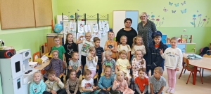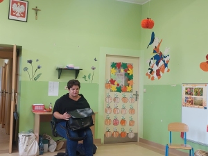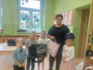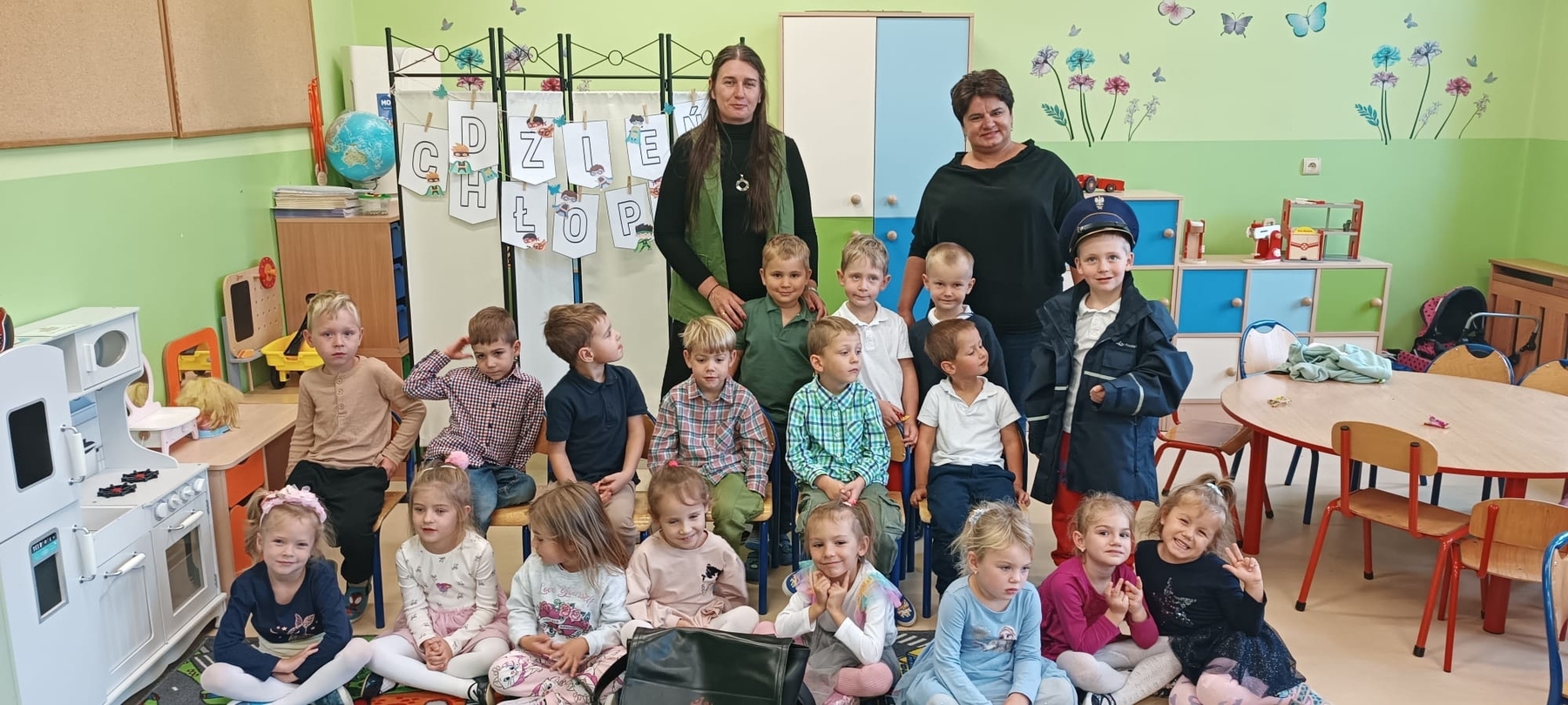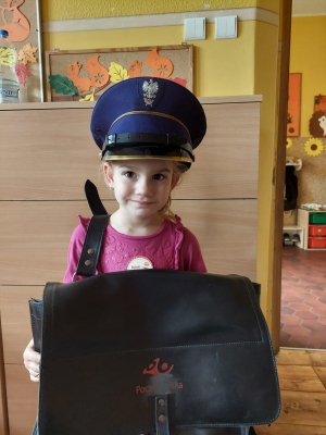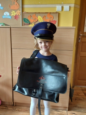 W dniu 30.09.2025r. nasze przedszkole odwiedziła Pani Listonosz Hanna Granieczny, z poczty w Rydułtowach. Zaprezentowała dzieciom strój listonosza i logo umieszczone na czapce. Następnie nasz gość opowiedział na czym polega praca listonosza, jak zaadresować list, kto to jest nadawca, adresat, co to jest list polecony i wiele innych ciekawostek. Każde dziecko mogło przymierzyć strój i torbę. Po spotkaniu Pani Hania miała dla wszystkich dzieci słodki poczęstunek.