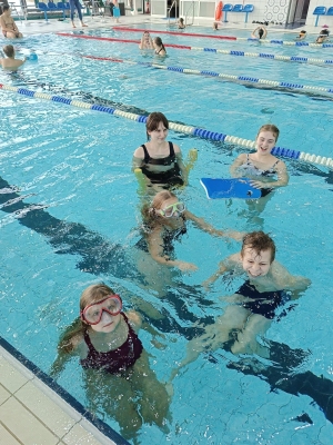 Uczniowie naszej szkoły w tym roku szkolnym mają okazję brać udział w zajęciach na basenie. Zajęcia te odbywają się na basenie Elektrowni Rybnik. Wyjazdy organizowane są dwa razy w miesiącu. Zajęcia te cieszą się dużym zainteresowaniem wśród uczniów. Jedni doskonalą swoje umiejętności pływackie, inni oswajają się
